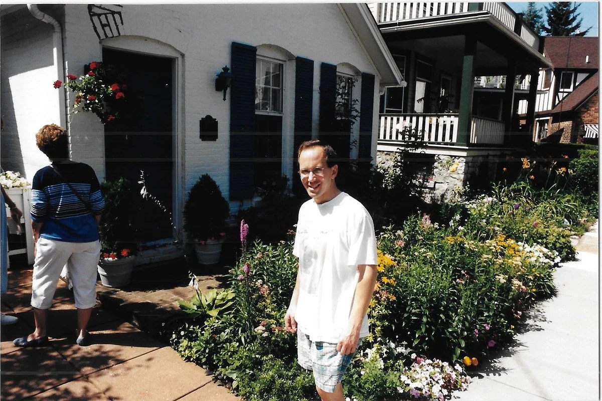 Jeffrey Tooke, an early Garden Walk Buffalo participant in his Union Street garden circa 1996. Jeff went on to be co-chair of Garden Walk (2006-07), and President of Gardens Buffalo Niagara (2015-22) and treasurer in between! (Photo: GWB Archives)