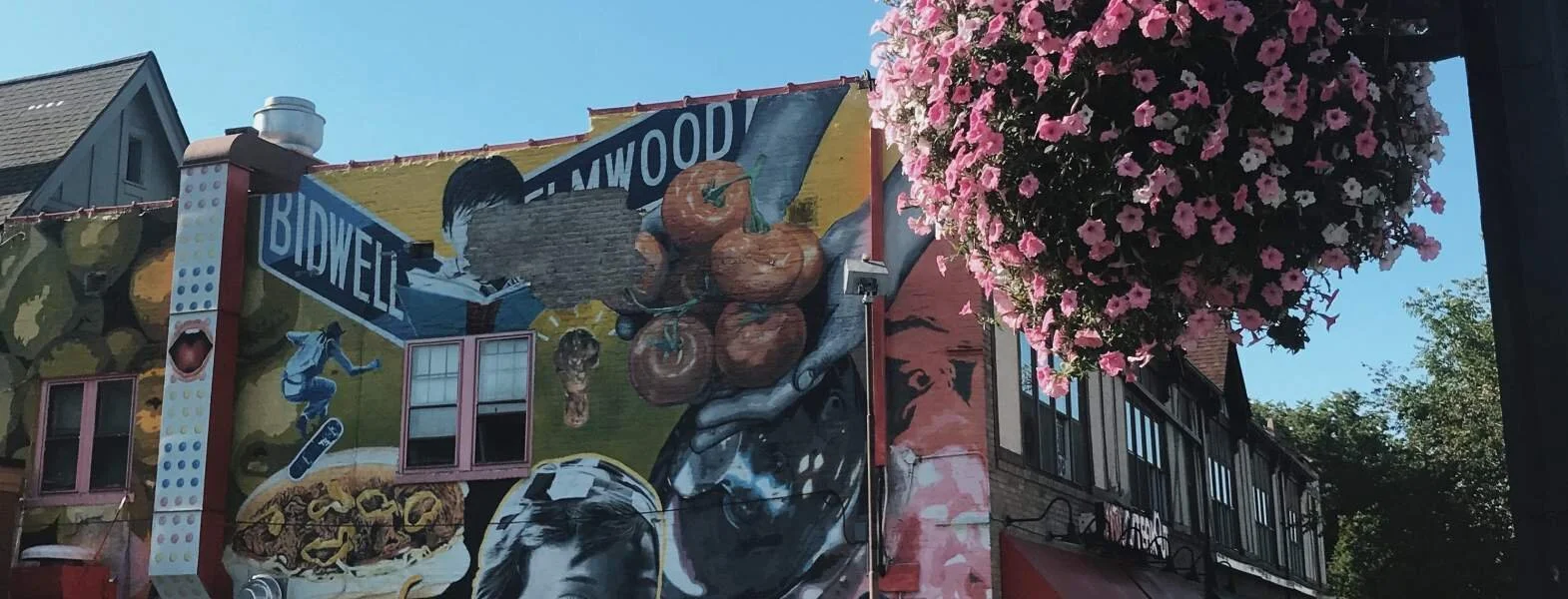 Eighty tree pits were mulched and planted throughout the village. Evergreens were selected for the pits for their four-season interest. Branches can be added to the pits during the winter months to brighten up the area all year long. One pit even includes some herbs as a small nod to the Bidwell Farmers Market. Since this is a heavy traffic area, petunias were selected for the hanging baskets due to their durability. Twenty-four bright pink and white flower-filled baskets can be found lining Elmwood Avenue.