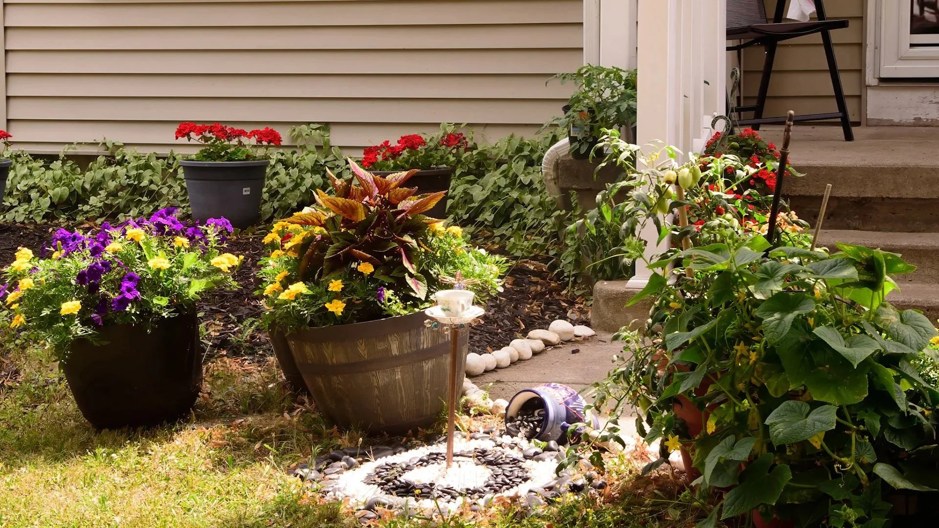 Neighbors came by to admire the flowers and vegetables. Also, a terrific photographer came by on Sunday (Derek Brim) and just made our day!